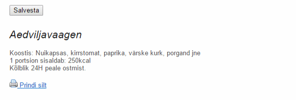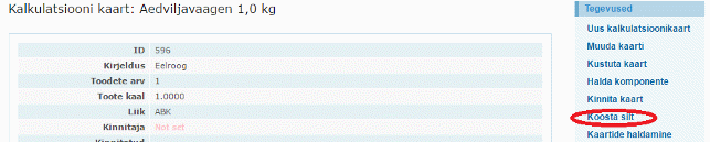 Nüüd on sildi vormistamiseks andmed kogutud, toiduained on järjestatud kahanevas järjekorras koguste järgi ja sildi pealkirjaks on pandud retseptikaardi nimi.